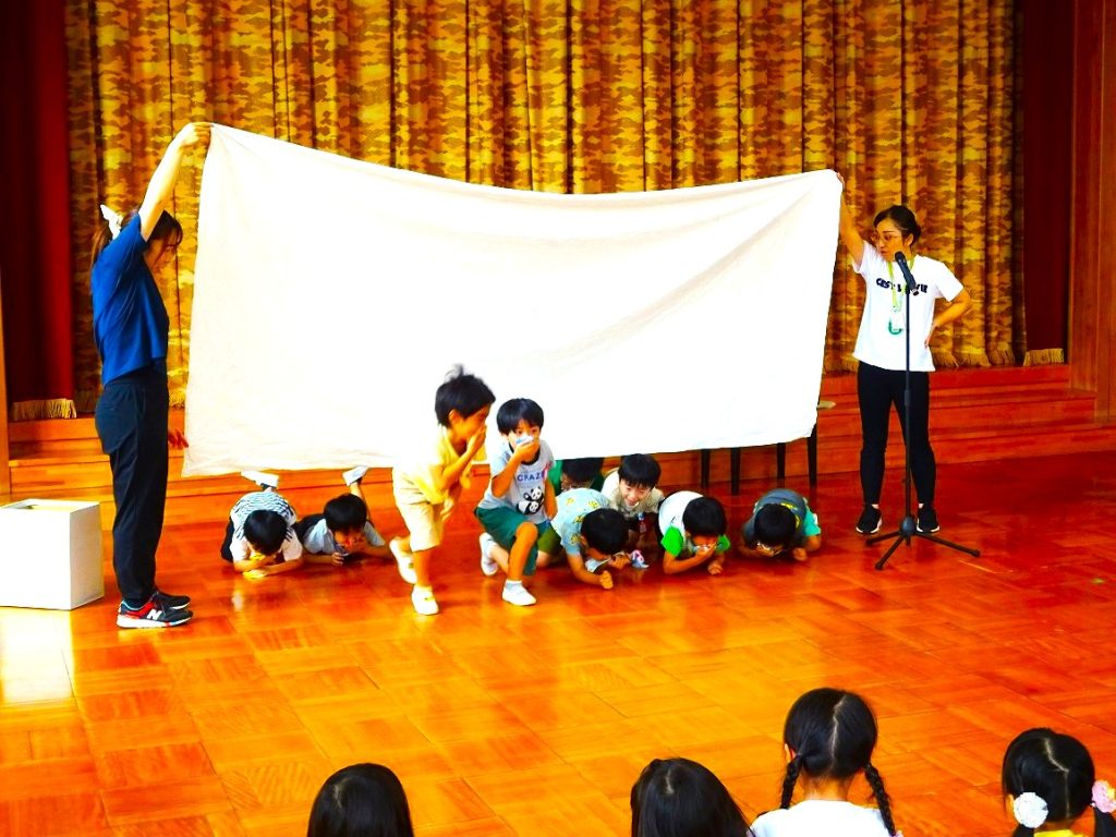 2025年9月11日 リスク回避プログラム(年長組・年中組) <ねらい> 火災や煙の怖さを知り、火災に巻き込まれた時に自分で守れるようにする ◆煙が出ている時の逃げ方 煙は上の方にたまるため、ハンカチで口と鼻を覆い、姿勢を低くして避難します 園長先生のお話 『大切な命をしっかり守りましょう!』 火災報知機と煙についての お話を聞きました 写真館TOPに戻る