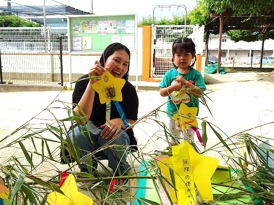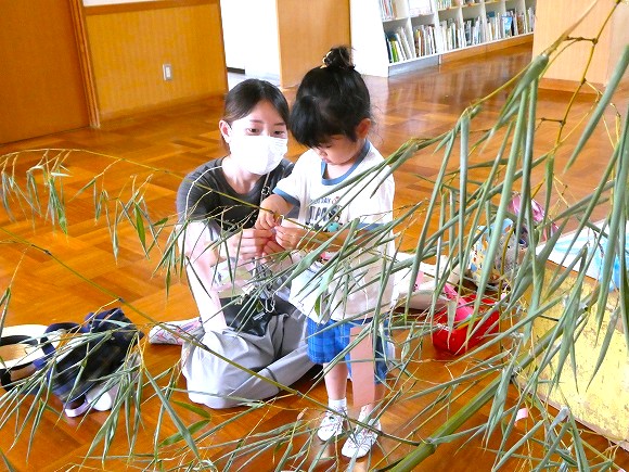 2025年7月4・7日 笹飾り 登降園時におうちの方と一緒に 自分たちで作った素敵な七夕飾りを笹につけました! *年長組* 年長組の笹飾り *年中組* 年中組の笹飾り *年少組* 年少組の笹飾り *いちご組* いちご組の笹飾り 写真館TOPに戻る