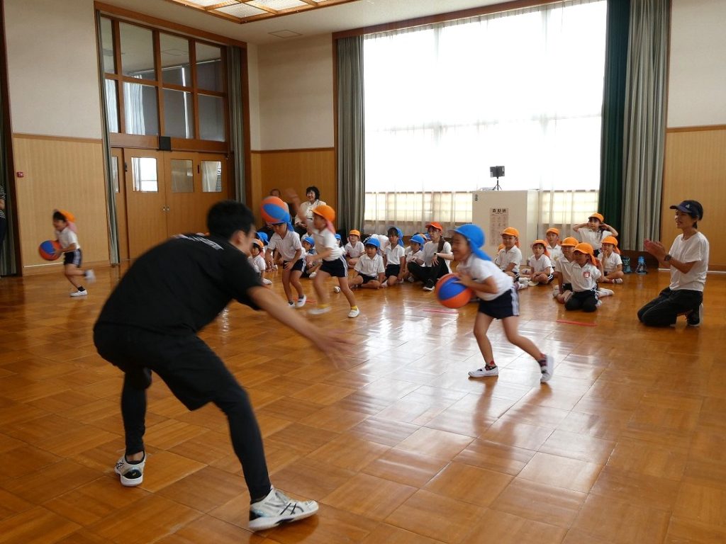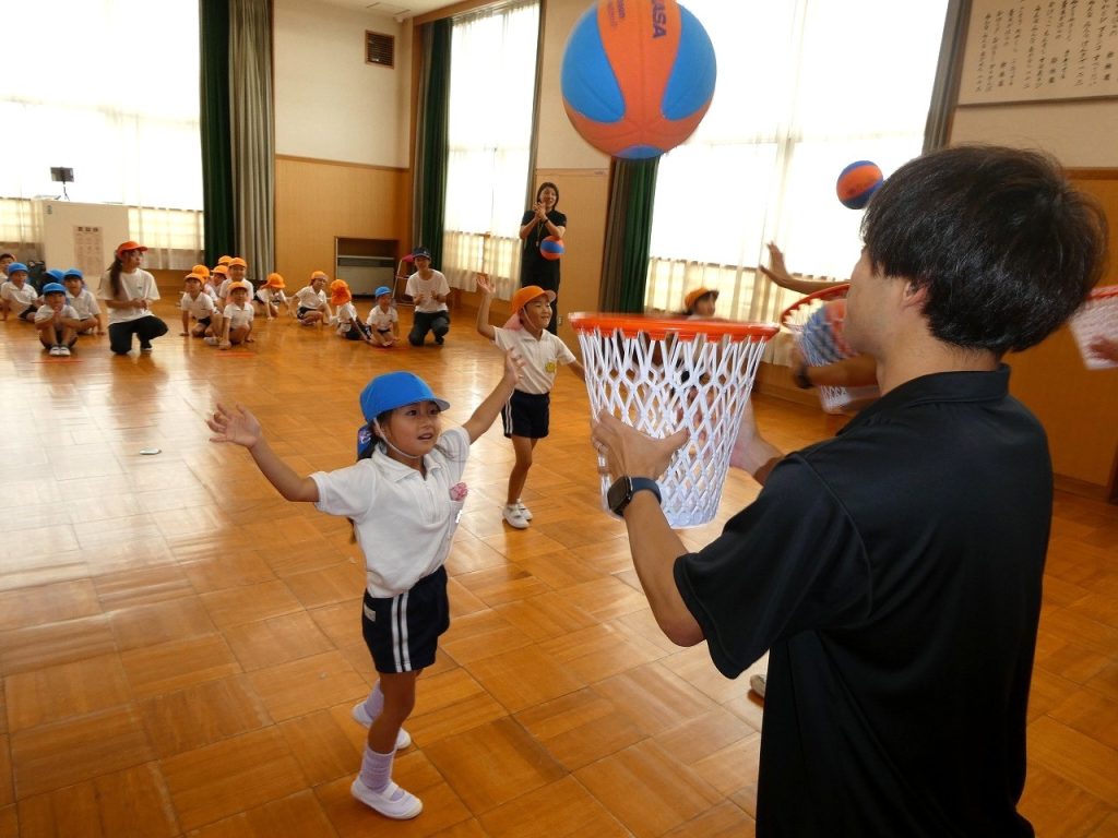 2025年9月5日 訪問バスケ教室(年長組) 日本バスケットボール協会公認キッズサポーターの方に来ていただき、 バスケットボールの楽しさを教えていただきました。 ゴールをねらってシュート! ナイスシュート☆ ドリブルで前進! 写真館TOPに戻る